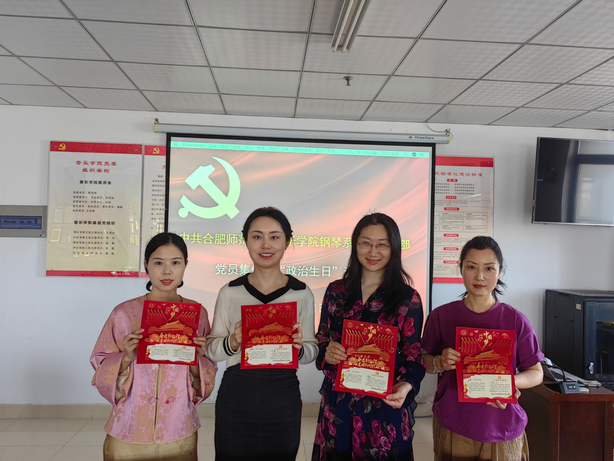 按照学校党委的统一部署,为深入学习贯彻党的二十大精神,激发教师党员政治热情,强化党员政治身份认同感,进一步增强党员的凝聚力和归属感,唤醒党员的入党初心,2024年4月24日,永利23411集团钢琴系教工党支部在行知楼1602会议室开展主题党日活动,为1月至5月加入中国共产党的教师党员集体过“政治生日”。会议由支部书记康勤主持,支部全体党员教师参加。