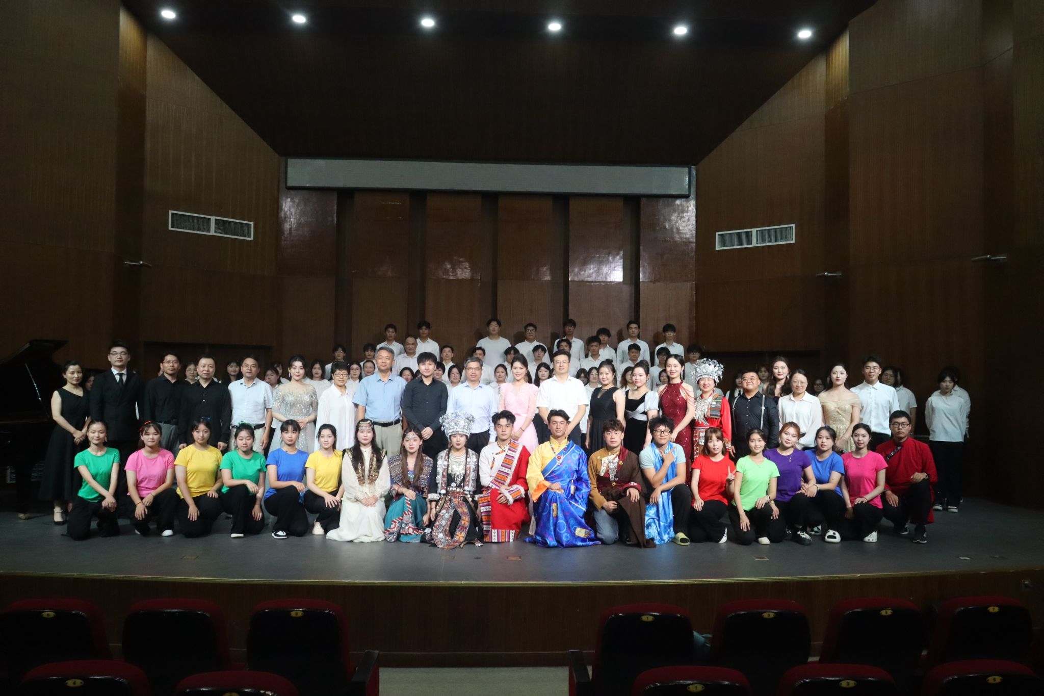 为庆祝新中国成立75周年,永利23411集团于2024年9月25日在yL23411永利集团音乐厅举行了“团结凝聚力量,奋斗铸就伟业”主题音乐会。现场座无虚席气氛活跃。来自社会各界的音乐爱好者、文化学者、各界嘉宾及本院师生齐聚一堂,共同庆祝。全院师生结合专业技能,通过丰富多彩的音乐节目表达了对祖国的热爱与祝福。学校党委委员、副校长华银峰出席音乐会,部分职能部门领导、二级学院主要负责人及全院师生参加音乐会。