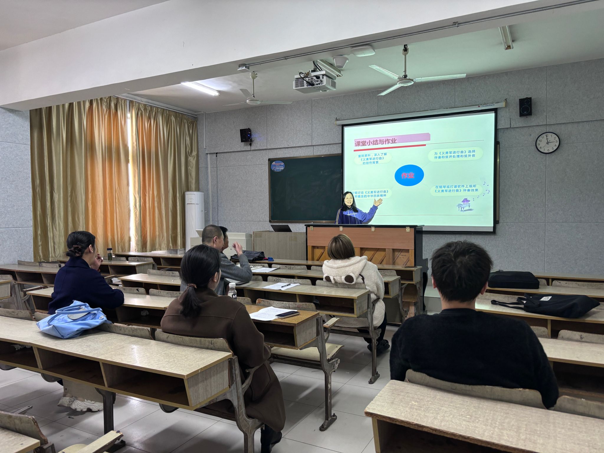在教研室无生授课与研课环节,各位教师积极备课,认真策划课程设计方案、科学制定授课计划、精准把握教学方法、巧妙融入课程思政。在评课研讨过程中,教师们敞开心扉积极交流,无生授课后进行教学反思,提取教研成果进一步完善课标修订此次系列大教研活动是每位教师对各自教学能力检测的一次大练兵,大家从学情状况、课程内容、教学设计、智慧教学的应用、课程思政融合、实践能力培养等方面进行了全面交流,效果良好。同时,老中青教师在磨课活动中各抒己见,从不同层面对理论系的教学情况进行了一次有效的梳理。“久久为功,善作善成。”