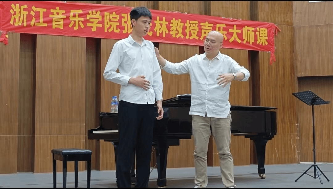 本次大师课,学院多位同学上台演唱,张茂林教授则在同学们的演唱中为同学们找出存在的问题,并帮助其改正。