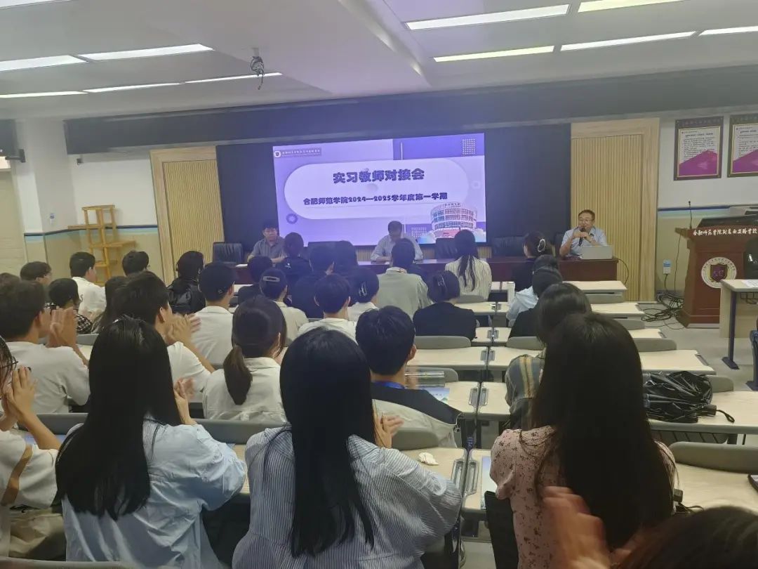江楠与其中6名实习学生到合肥市西安路小学进行交流学习。随后前往会议室参加见面会。本次会议由聂和彬主持,陆爽负责实习安排,徐年乐进行总结发言。同时双方就本次实习的意义和任务进行了交流探讨,明确了实习教师的日常工作安排、实习教师师德注意事项等。