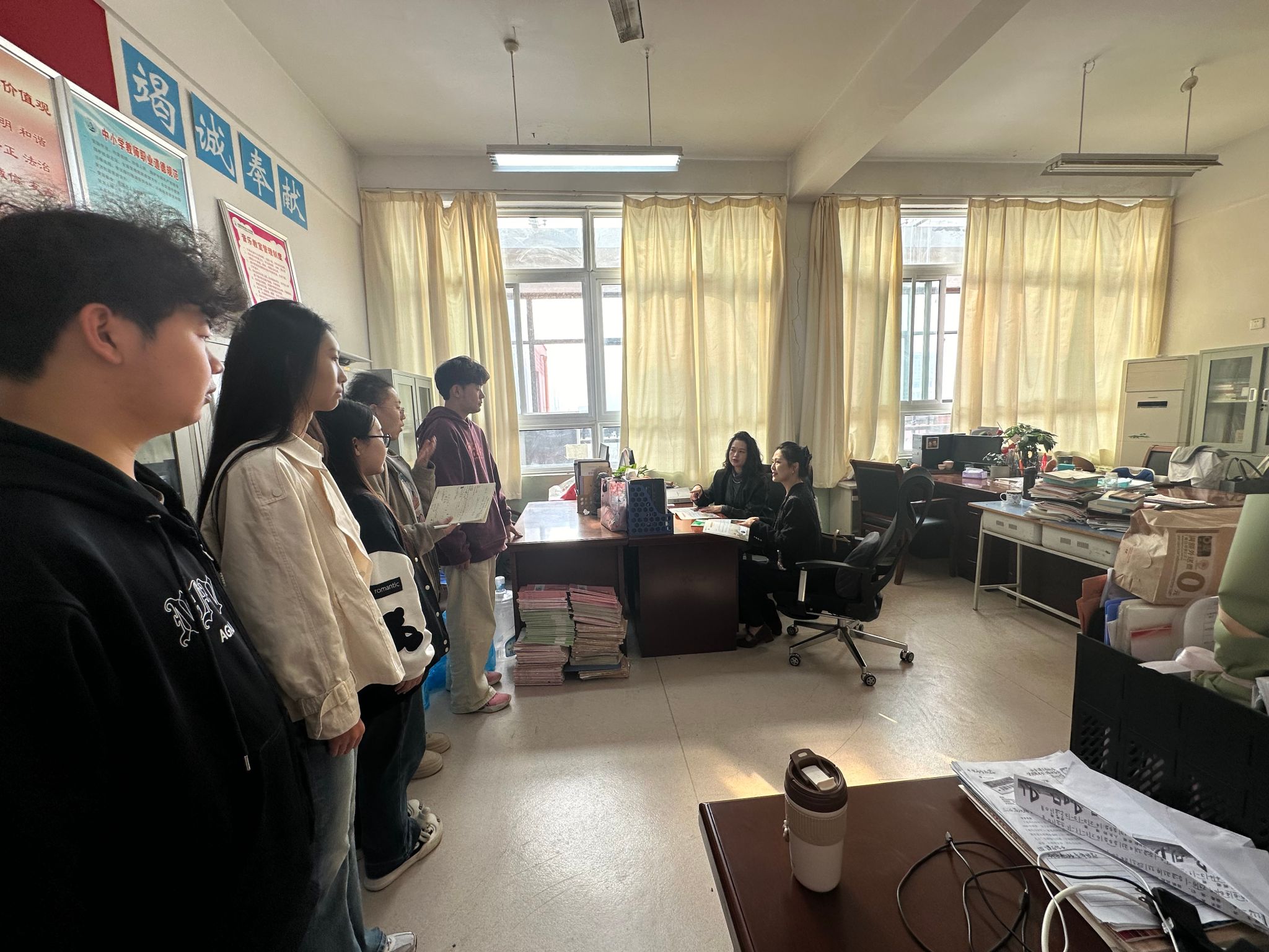 为了更好地了解实习生的实习情况,谢梦珂于11月4日赴实地看望正在四十六中学实习的六名学生,并认真聆听他们的课堂教学,对实习生的教学实践进行了细致的指导,并与校外指导老师沟通交流。