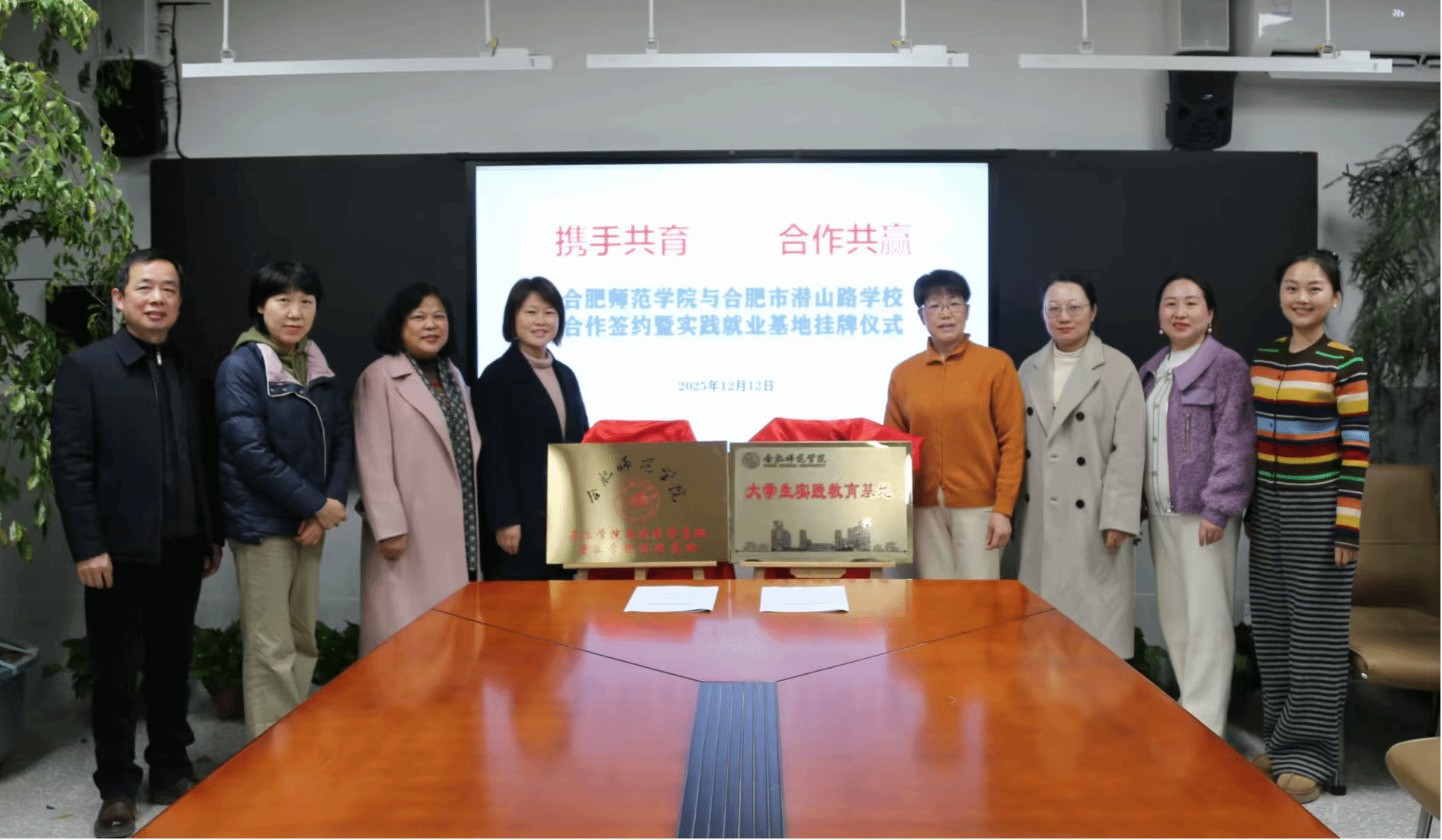 12月12日,永利23411集团领导班子、挂职教师何冰与合肥市潜山路学校全体党政领导齐聚一堂,共同见证两校实习基地挂牌仪式圆满举行。此次挂牌标志着双方在艺术教育协同育人领域达成深度共识,将为师范生实践成长与小学艺术教育提质搭建坚实桥梁。