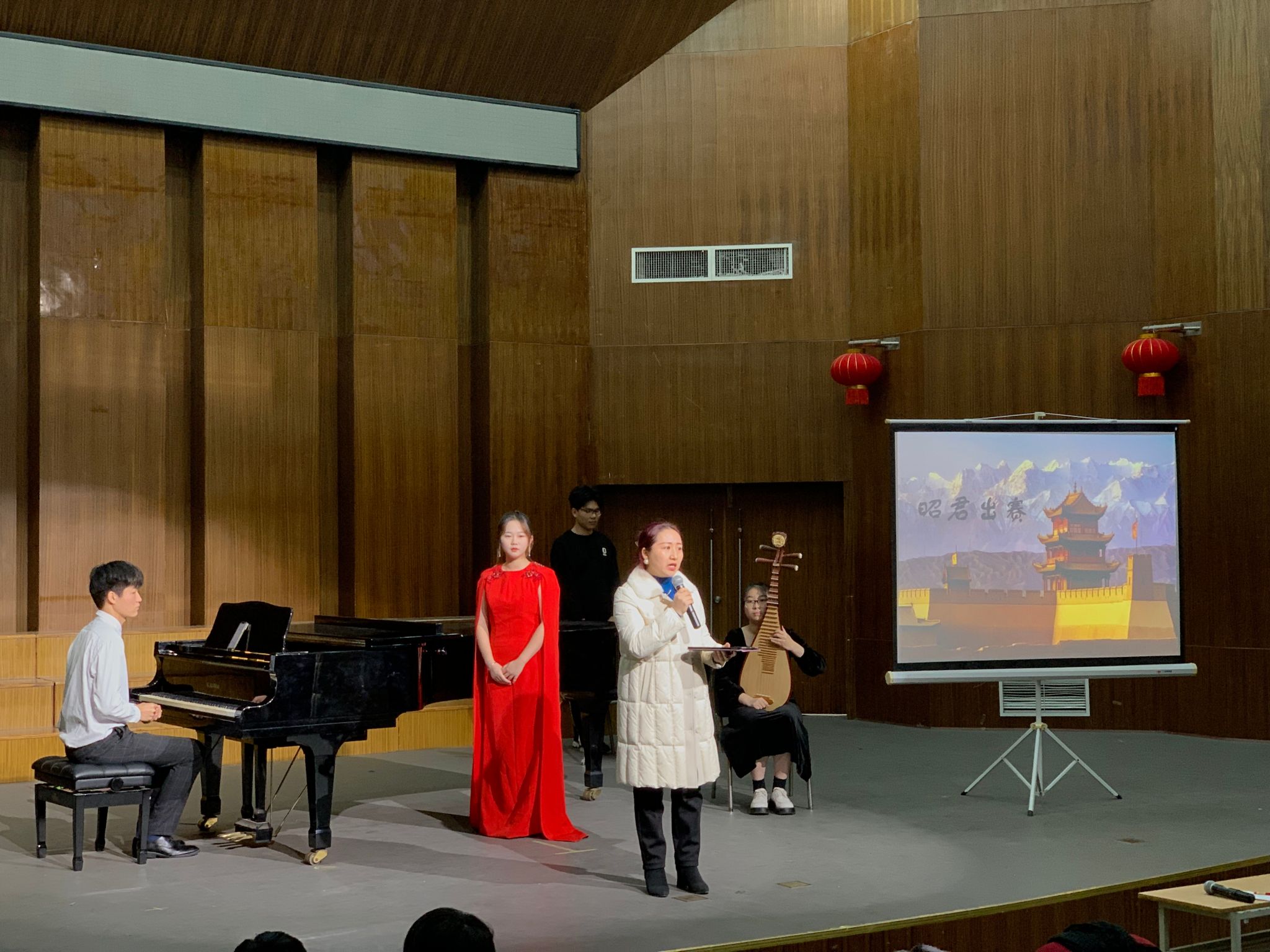 12月13日下午14时,由永利23411集团主办、永利23411集团实践实训中心承办的“音乐厅里的课程思政系列讲座——歌声里的家国情怀”在音乐厅开展。此次学术活动以讲座、作品赏析、学生示范的模式进行,由学院实践实训中心主任陆伟副教授主讲,韦静茹、付艺铭两位同学示范演唱。现场有百余名学生聆听了讲座。