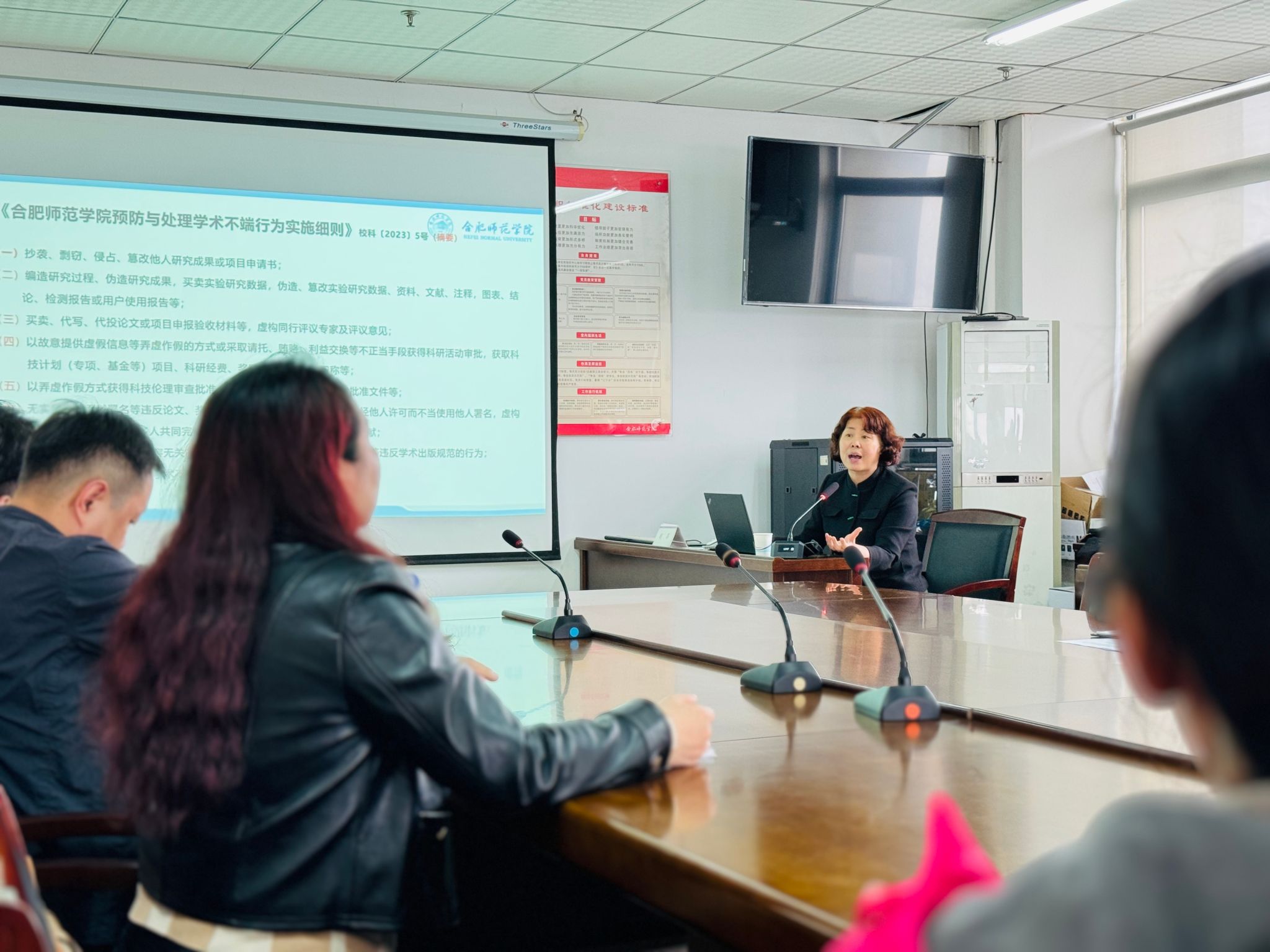 胡昂首先对学校科研管理的主要规章制度进行了解读,并结合实际案例强调了学术诚信的重要性,对学术不端行为进行了严肃的剖析和警示。她详细阐述了科研项目管理、科研成果管理和科研团队管理“三件套”的理念,提出了纵向项目、横向项目一体双翼、齐头并进的发展思路;围绕学院科研氛围的营造,对各级各类科研项目申报进行了重点辅导。最后系统介绍了2024年度学校的科研工作计划。