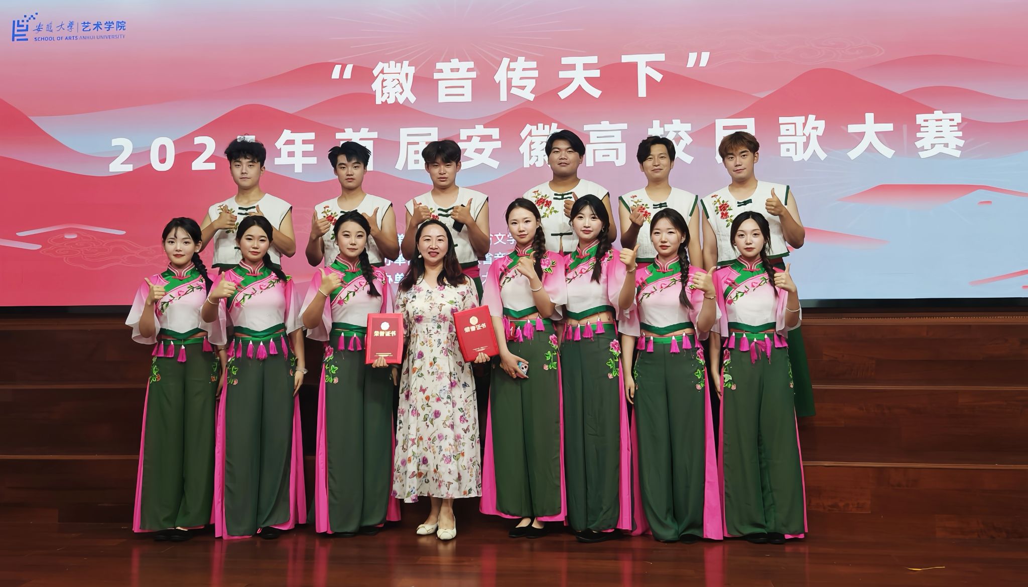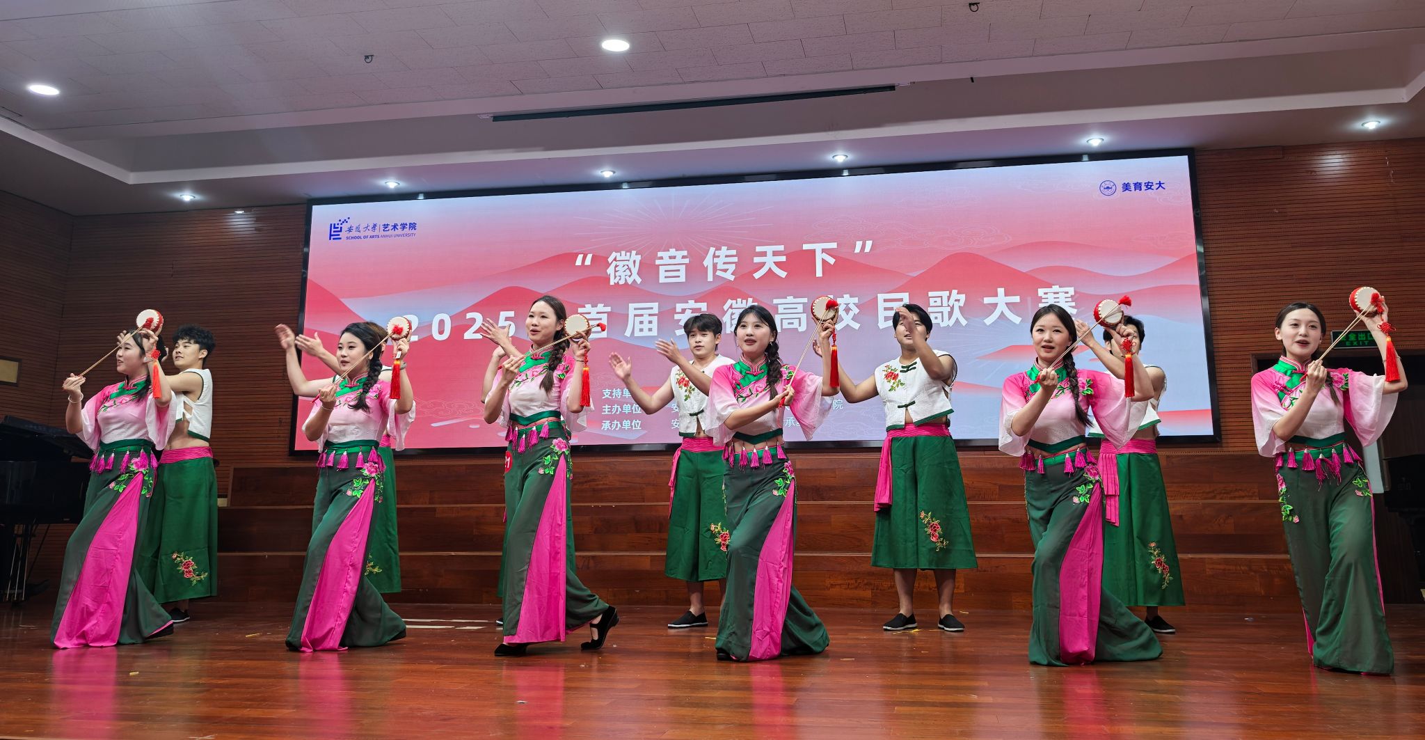 在国家大力推进文化强国建设、重视优秀传统文化传承发展的时代背景下,6月11日下午,由安徽省文联支持,安徽省音乐家协会和安徽大学艺术学院主办,安徽大学安徽传统民歌传承基地承办的“徽音传天下”2025年首届安徽高校民歌大赛决赛在安徽大学艺术学院音乐厅举行。我院指导老师陆伟、蒋睿青带领同学们参演的《凤阳变成金凤凰》和《花鞋变成泥疙瘩》两首作品分别获得铜奖和优秀奖,并列全省第四名和第七名。