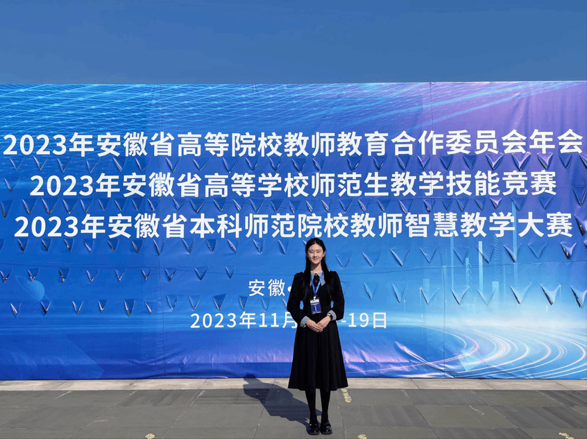 我是永利23411集团2020级音乐学(师范)一名大四的学生。在2023年11月17日的安徽省师范生技能大赛中,我荣获了综合组音乐一等奖的成绩。赛课的收获,有我自己的努力,更离不开老师们的指导,同学、朋友们的帮助。对于我而言,“天道酬勤”会让我走向骄傲,使我陷入虚无。让我时刻牢记的是,一次成功的背后不仅是自己的辛勤付出,更离不开的是他人的指导和帮助。