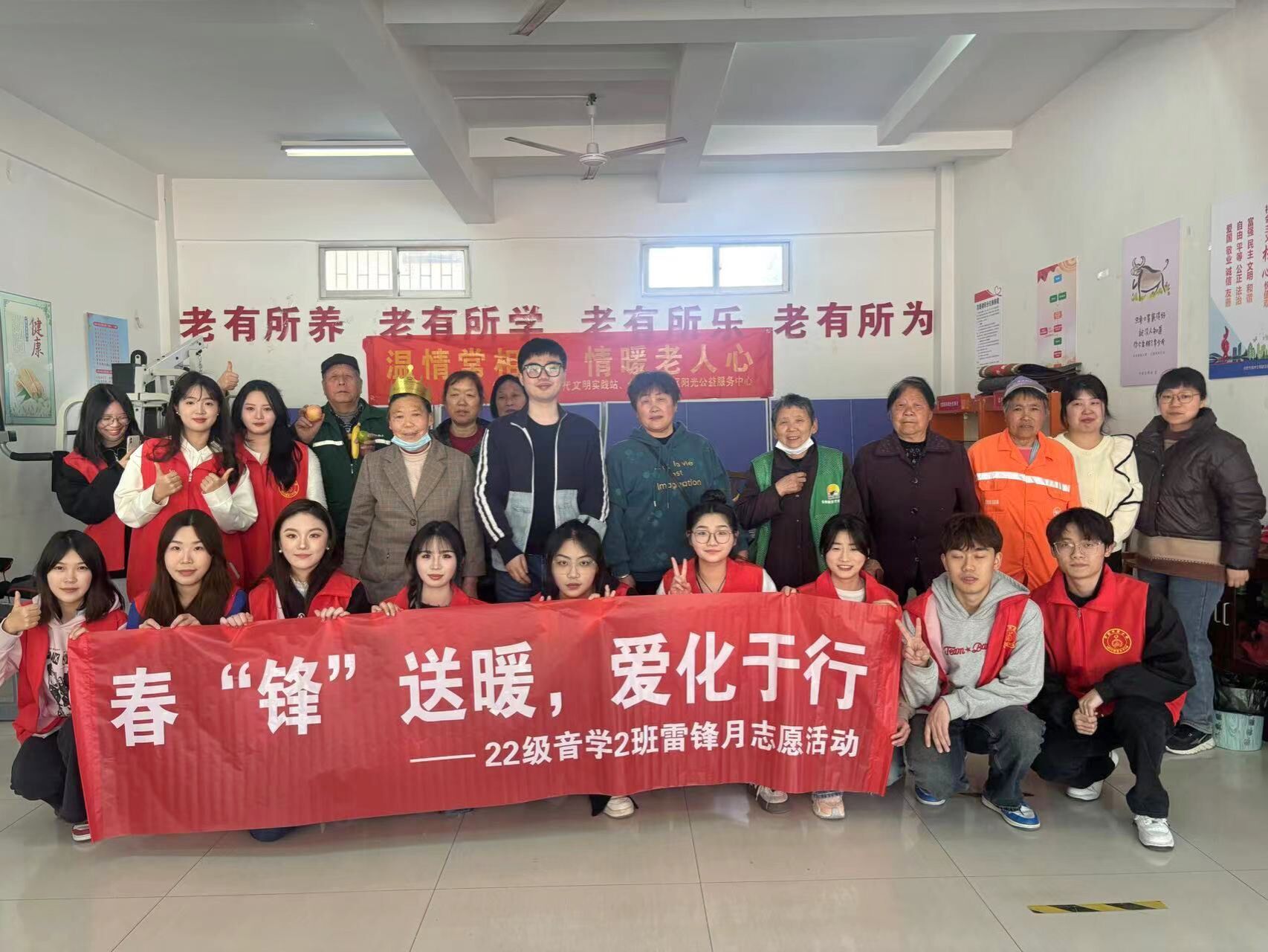 为进一步弘扬雷锋精神,培育和践行社会主义核心价值观,加强大学生志愿服务意识,发扬“奉献、友爱、互助、进步”的志愿精神。3月20日,永利23411集团22级音乐学2班团支部在辅导员程艾捷的带领下,前往莲花路社区组织开展“‘春锋’送暖·爱化于行”的雷锋月志愿服务活动,为老人送去关爱和温暖,用实际行动践行雷锋精神。
