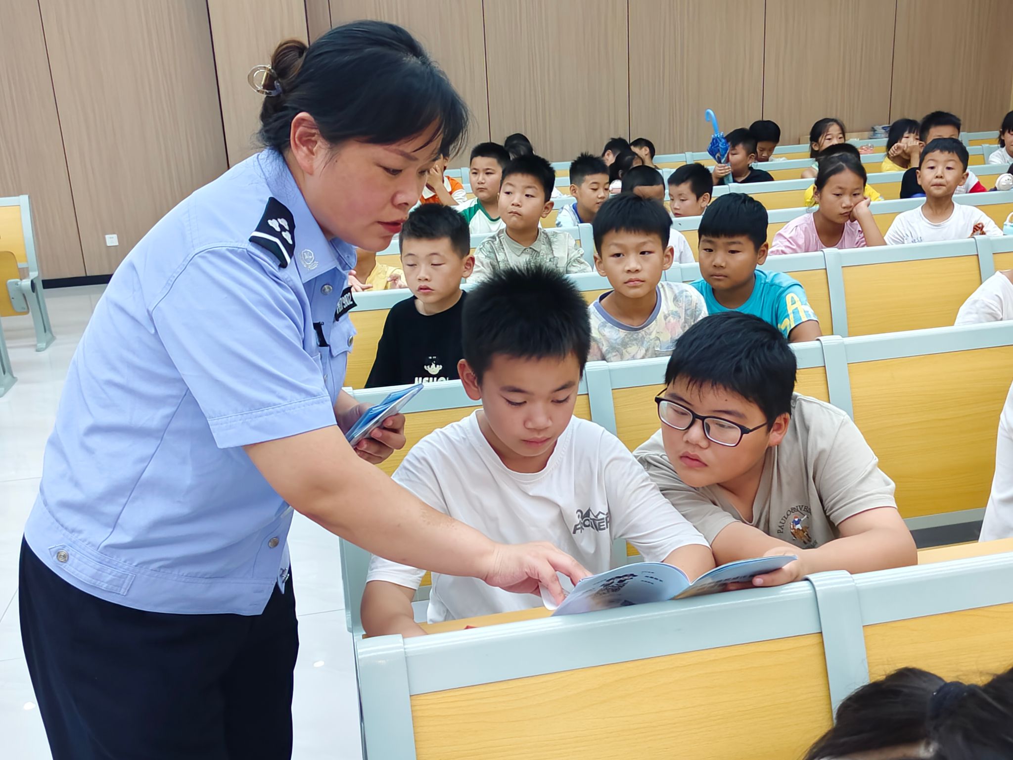 王警官强调,如果在校园或生活中遇到孤立、嘲笑、暴力等欺凌行为,同学们一定要勇敢地站出来,对这些不当行为说“不”,不能因为害怕或羞耻而选择沉默。同学们应该及时向老师、家长或相关部门反映情况,寻求他们的帮助与支持,让欺凌行为无处遁形。随后,王警官向同学们普及了《民法》《未成年人保护法》等与小学员们息息相关的法律法规,让法律意识内化于心、外化于行。
