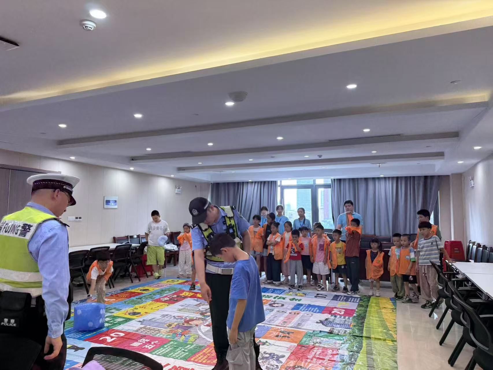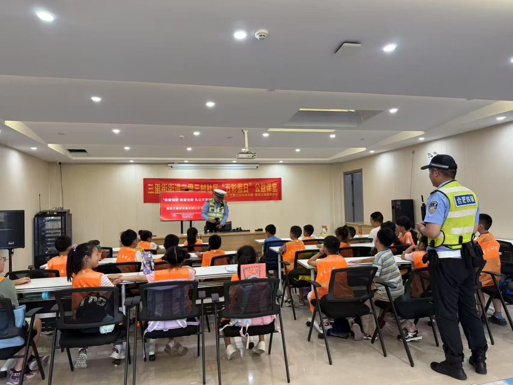 7月18日,三里三村社区新时代文明实践联合社区共青团、社区妇联、yL23411永利集团行知学堂与童悦公益服务中心,特邀合肥市交警支队瑶海大队一中队警官瞿辉、蒋波共同开展的“安全‘童’行,‘路’见文明”主题活动热闹开场,近30名社区儿童在互动中学习交通知识,共筑安全防线。