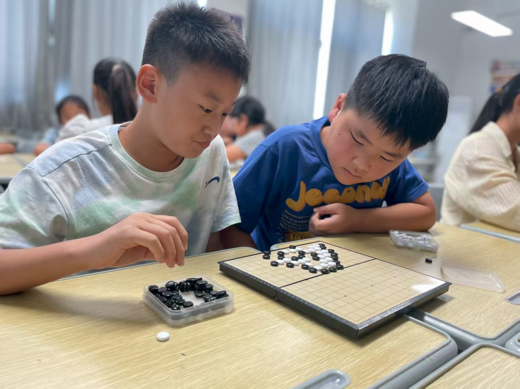 在书法课堂上,小先生许恒搏通过“最早的文字起源”趣味问答导入,辅以图文讲解,引导学员从纠正握笔姿势到学习基本笔画,在书写实践中领略汉字形态之美与文化韵味;在围棋课堂上,小学员们积极举手,踊跃参与,小先生朱紫玉以围棋课程为载体,带领学员积极探寻传统文化学员们在实战对弈中锻炼逻辑思维,专注思考与谨慎落子成为学堂生活的难忘片段;下午的物理实验课充满欢声笑语。小先生郭甲、李昊晨结合专业,深入解析古代建筑蕴含的物理智慧,巧妙融入杠杆原理与力学知识,学员们在探索传统智慧中领会物理精髓,课堂知识性与趣味性相得益彰。