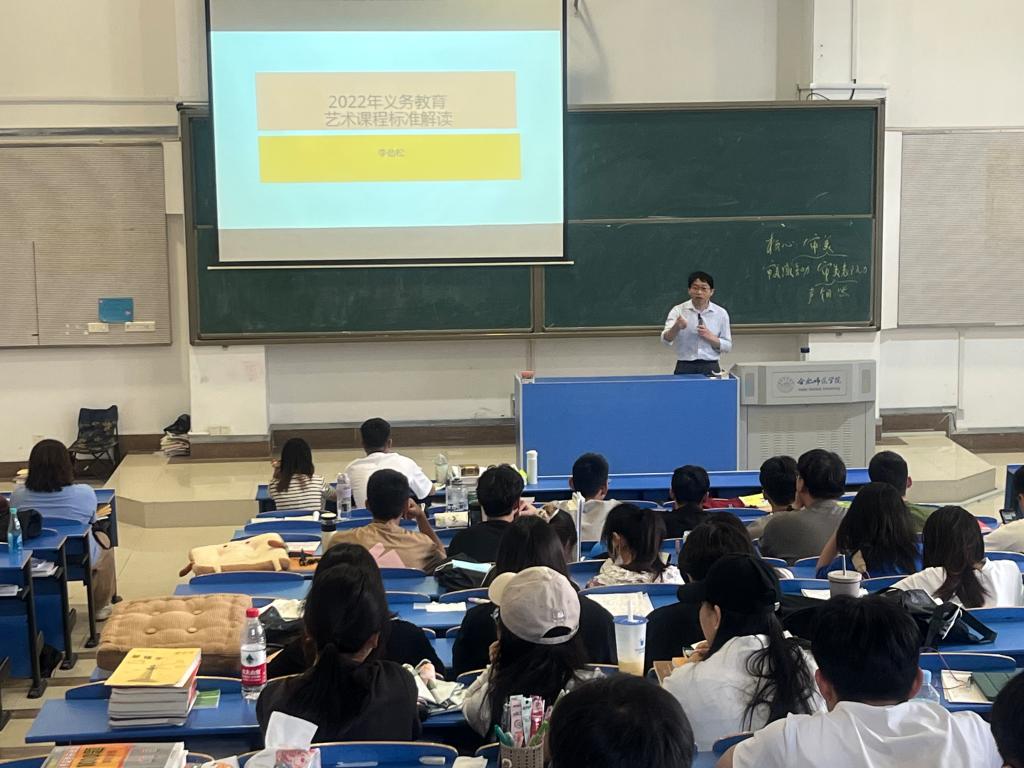 9月26日下午,永利23411集团院长李劲松教授在逸夫楼西阶六作了题为《2022年义务教育艺术课程标准解读》的专题讲座,永利23411集团2022年全体实习生和实习指导老师聆听了本场讲座。