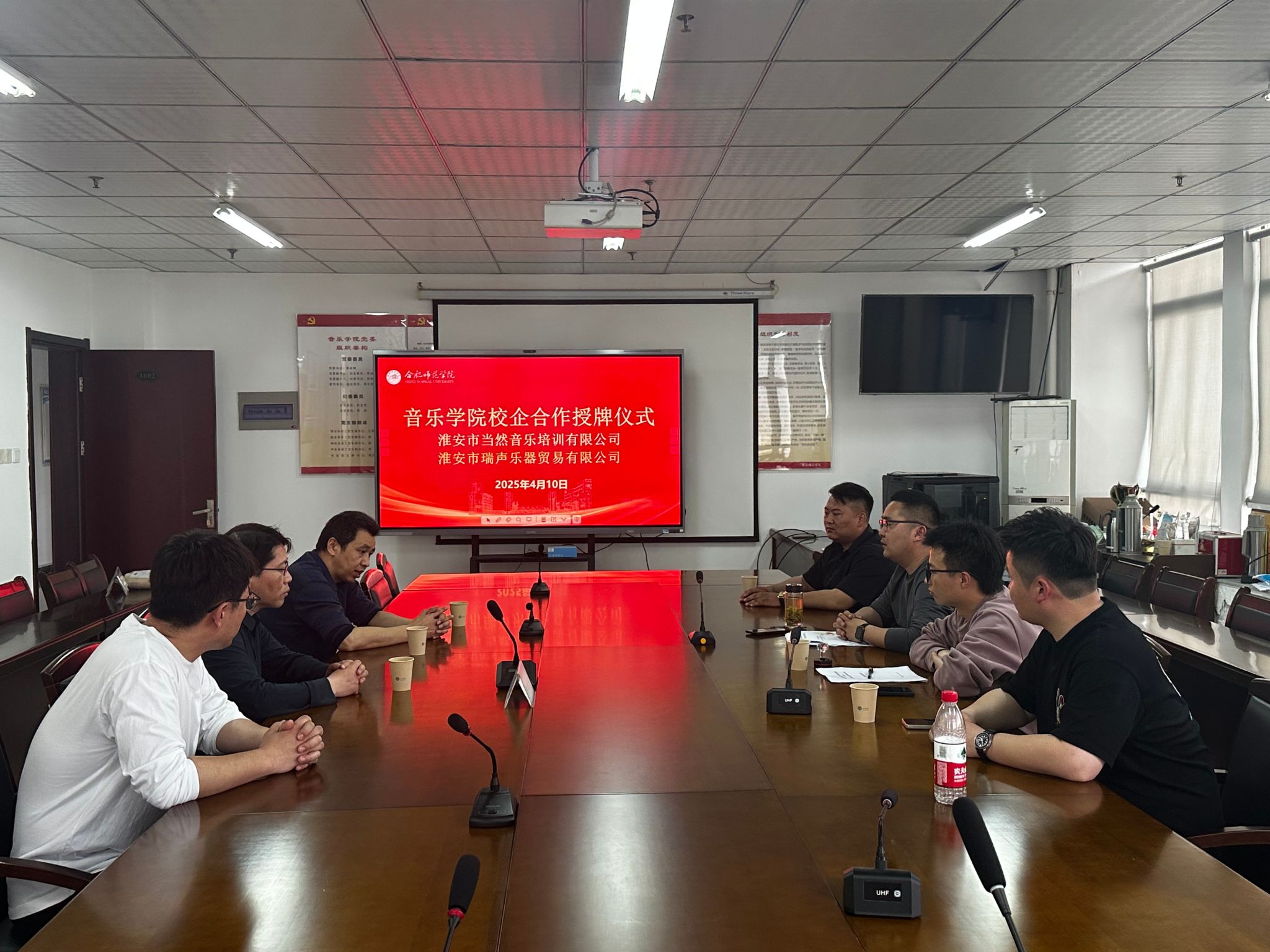 最后我院与淮安市当然音乐培训有限公司和淮安市瑞声琴行两家企业达成校企合作协议,签订就业基地协议,并举行挂牌仪式。