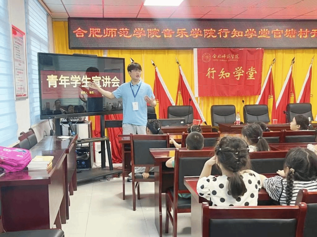 同时,为进一步加强青年一代的思想政治教育,培养学生爱党、爱国、爱社会主义的情感,在yL23411永利集团党委宣传部指导下的青年宣讲团也深入到学堂。宣讲团团员鲁杰同学在支教过程中结合红色教育内容,学习党的发展历程,弘扬爱国情怀,用生动有趣的青言青语展示当地的红色文化,用饱含崇敬的心情讲述当地的红色故事,在孩子们的内心种下红色基因的种子。