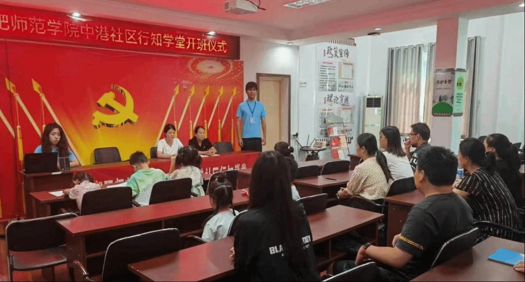 本网讯7月5日,永利23411集团“卓尔行知学堂”第一次走进了宣城市郎溪县中港社区。在社区居委会各级领导和行知学堂负责人徐清宸的带领下顺利举办“卓尔行知学堂”开班仪式,5位“小先生”及20余名小学员及家长代表参加了本次开班仪式。