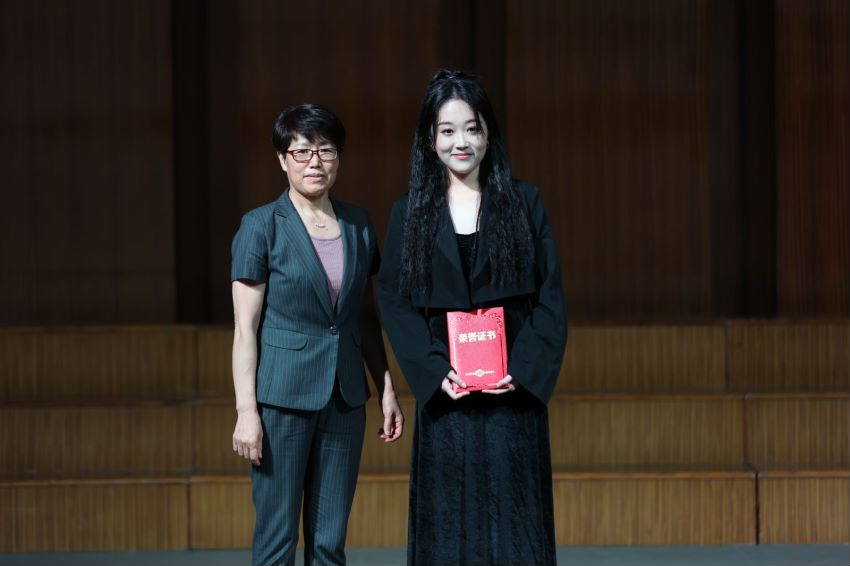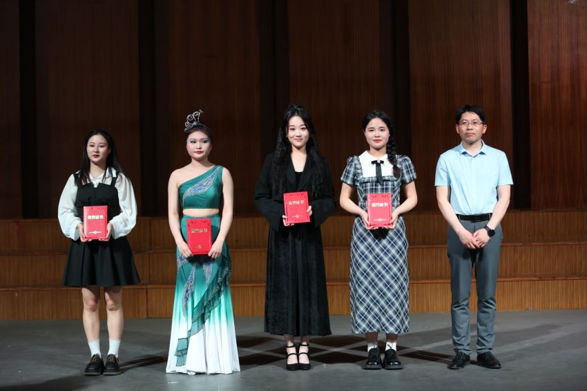 在音乐会的中场环节,永利23411集团举行了2023届国家奖学金,省级、校级优秀毕业生颁奖仪式。永利23411集团党委书记蔡成梅、院长李劲松、党委副书记宋辉、副院长康勤上台为获奖者颁奖及合影留恋。