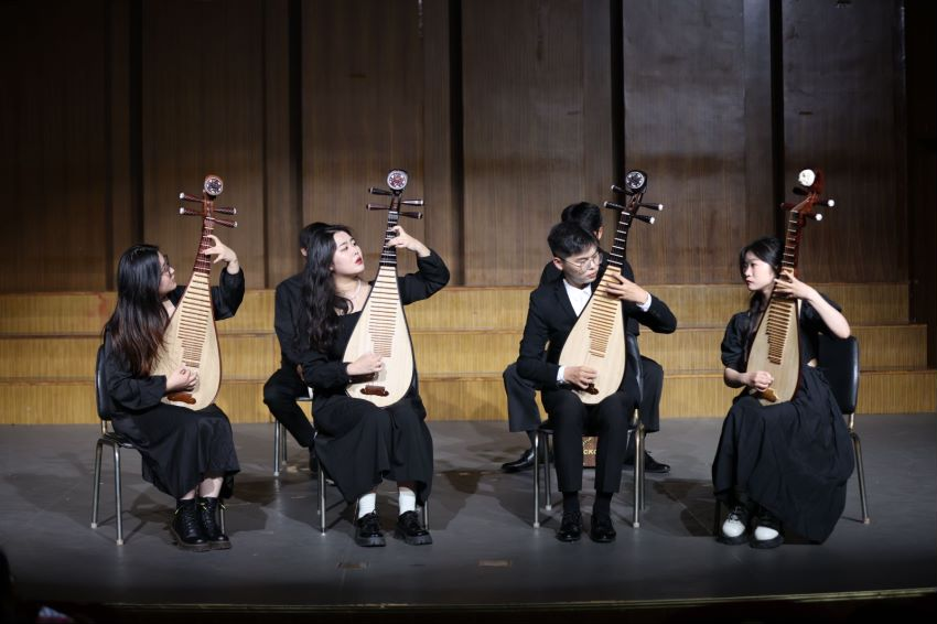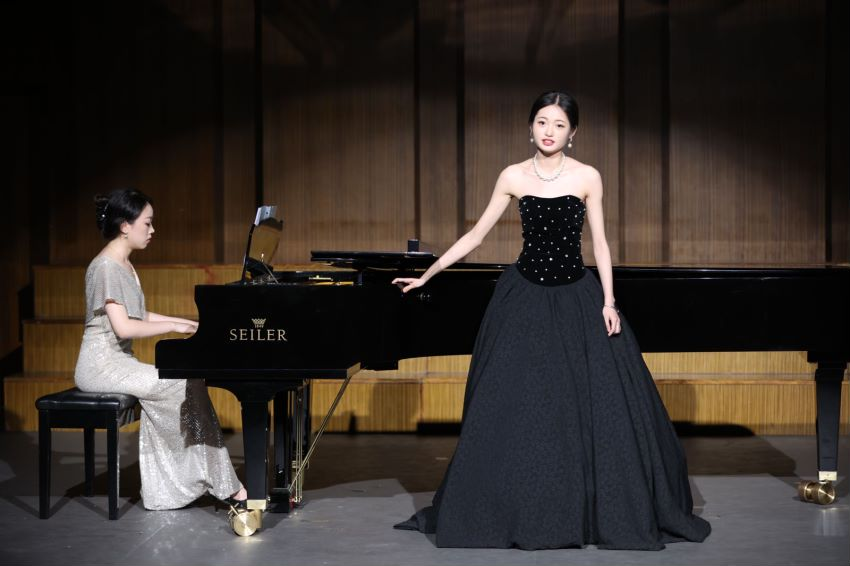 伴随着清脆悠扬的民乐之声,由永利23411集团民乐专业的学生带来的民乐合奏《小满大暑》,拉开了音乐会的序幕;女声独唱《我怎样去爱你》作品旋律优美,深情大气,歌词情深意切,抒发了海外游子对祖国浓厚的爱意;室内乐《一步之遥》饱含着现代音乐的动感也拥有古典音乐的魅力;女声二重唱《待到微风轻轻吹过》选自歌剧《费加罗的婚礼》,演员激情澎湃的演唱将剧中诙谐、幽默、既轻松又多重情节交叉的特点得到了淋漓尽致的体现;二胡合奏《赛马》通过展现奔腾激越纵横驰骋的骏马,来刻画蒙古族人民节日赛马的热烈场面;竹笛重奏《走进快活岭》运用中国传统音乐锣鼓点的节奏型,大跳音程的演奏,将登山者轻快的心情通过短促的吐音鲜明的表现出来;歌剧《江姐》选段《红梅赞·绣红旗》表达了我们的中华儿女,热爱党以及热爱祖国的一片红心;琵琶四重奏《自由探戈》以其独树一帜的快节奏风格吸引着台下观众的心弦;舞蹈《竹林晨语》亦动人的音乐,优美的舞姿,展现出青春的魅力;古筝重奏《柳京之舞》模拟了朝鲜民族风格音调,展示出新颖多变地听觉感受;钢琴独奏《火把节之夜》通过各种旋律的对比,运用民族特色的节奏,生动形象地再现了彝族欢快、热烈的土风场景;男女二重唱《让我们携手同行》选自歌剧《唐璜》,生动展现了各自不同的人物特征和内心变化;古筝协奏曲《定风波》借古乐抒发今日的情怀,表达了中华民族面对挫折不屈不饶的精神;男女四重唱《饮酒歌》选自威尔第歌剧《茶花女》以轻快的舞曲节奏、明亮的大高色彩及六度大跳的旋律动机描绘出沙龙舞会上热闹、欢乐的情景;八手联弹《费加罗的婚礼》通过双钢琴多声部的演奏将作品内涵尽数展现;小合唱《共筑中国梦》演唱者深入情境展示了中国人民满怀豪情,为实现中国梦努力向前的精神面貌,将音乐会推向了高潮;最后,在永利23411集团2023届毕业生演唱的歌曲《星辰大海》、《告别是一件难事》中,整场音乐会华美落幕。