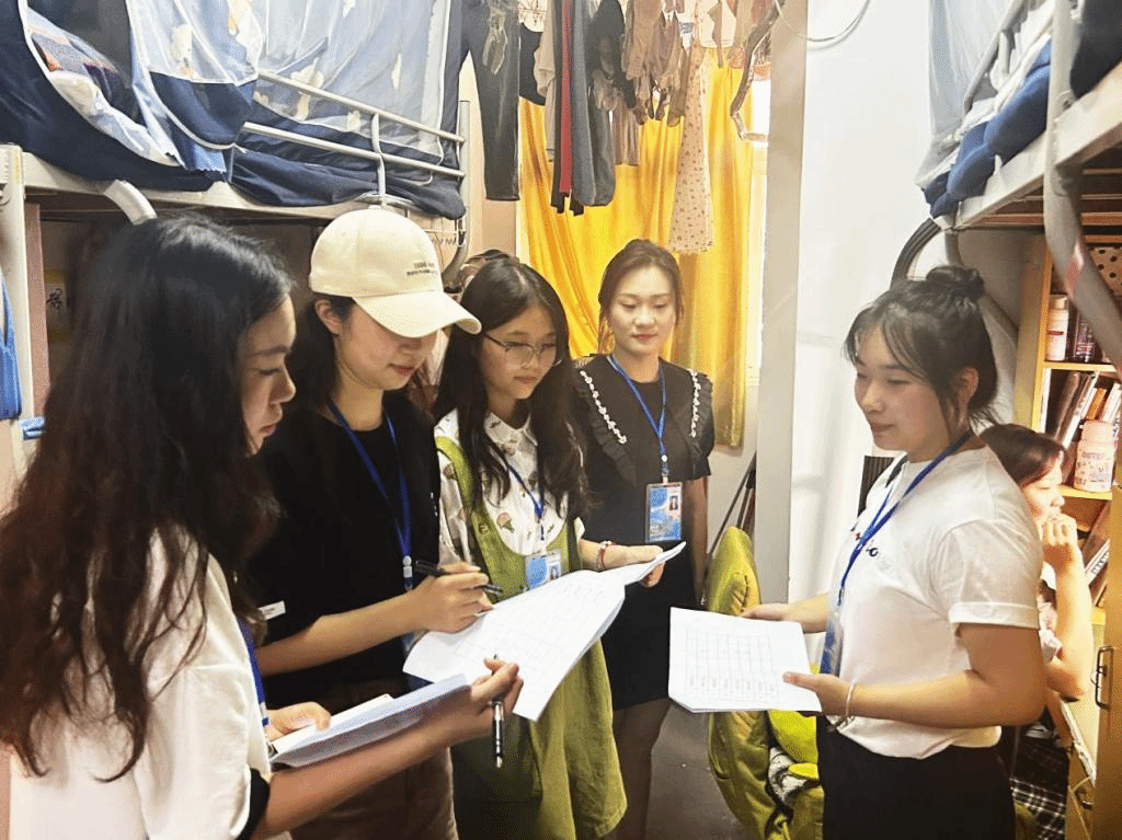 在评选中,参与评审的工作人员进入各寝室进行实地检查,从风格美化设计、环境卫生、同学解说等角度出发,综合考量,现场打分。同时就指出还存在的不足,期望他们能在接下来的寝室生活中一步一步完善这些问题,给自己一个更好的寝室生活环境。