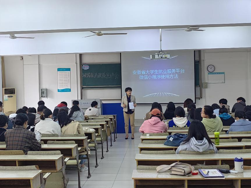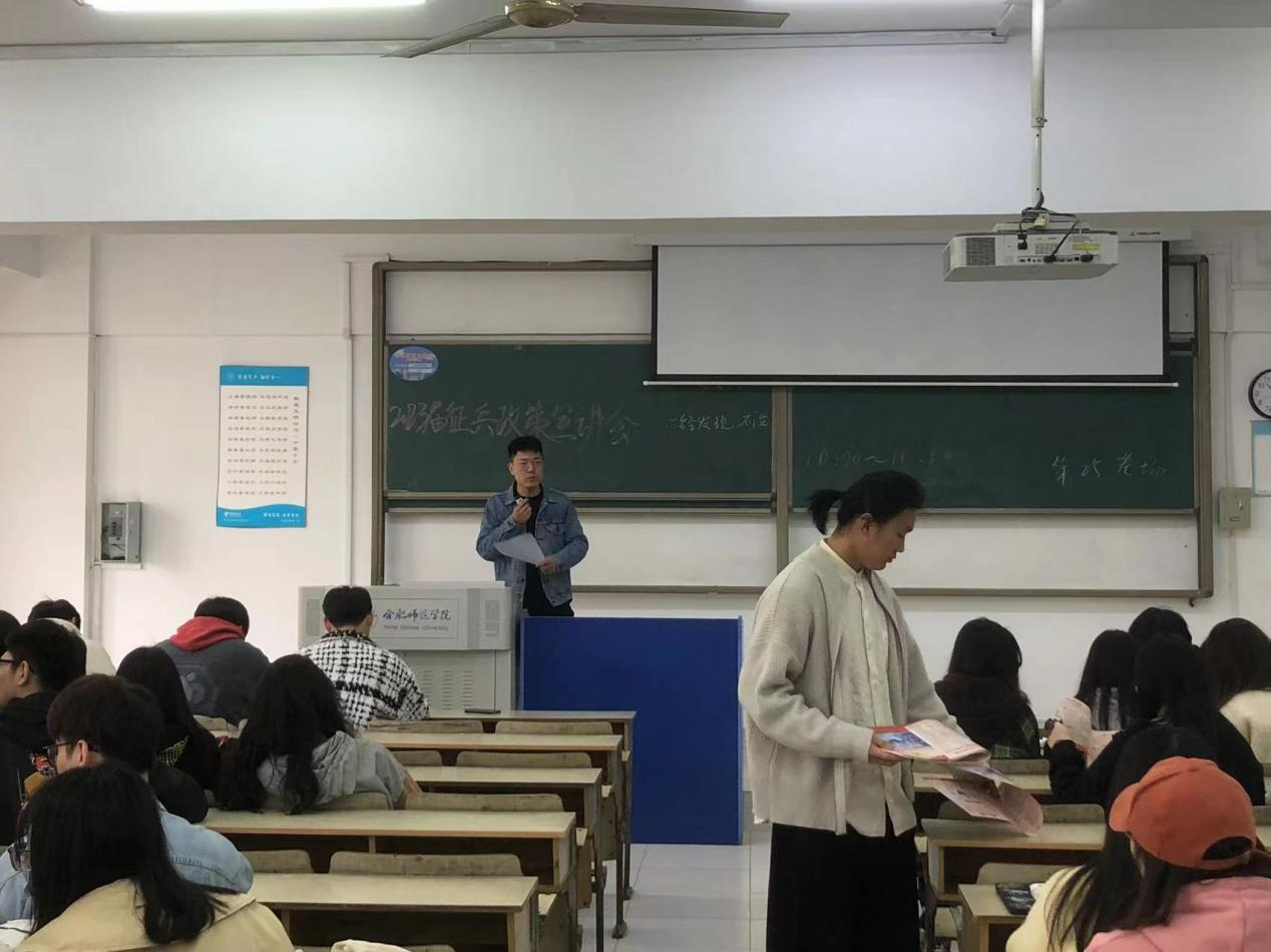 本网讯 为深入学习贯彻新时代党的强军思想,提高当代大学生国防意识,鼓励大学生积极应征入伍,4月24日上午,永利23411集团在博约楼211教室开展征兵宣传动员大会。永利23411集团党委副书记蔡成梅、2023届毕业班辅导员及全体毕业生参加会议。会议由2023届毕业班辅导员王岩主持。