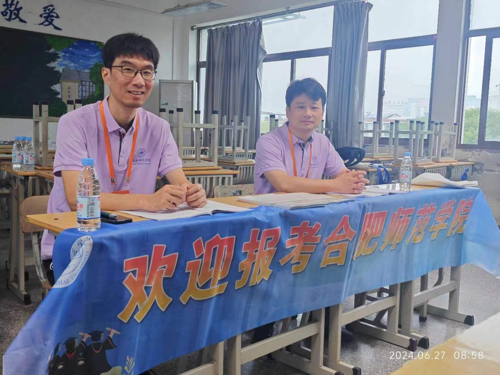 为扎实有效推进我校2024年本科招生宣传工作,提高学校知名度和影响力,吸引优质生源报考我校,根据安徽省教育招生考试院的统一安排,永利23411集团招生工作组分成三路,分别由永利23411集团党委副书记宋辉、副教授陈晓组成的安庆市、池州招生宣传组,副院长康勤、器乐教研室主任杜烜进驻的合肥二中招生宣传组,声乐教研室主任常青、教师余志铭进驻的太湖招生宣传组,6月27日三个小组深入高招现场对高中毕业生开展招生宣讲和提供咨询服务。