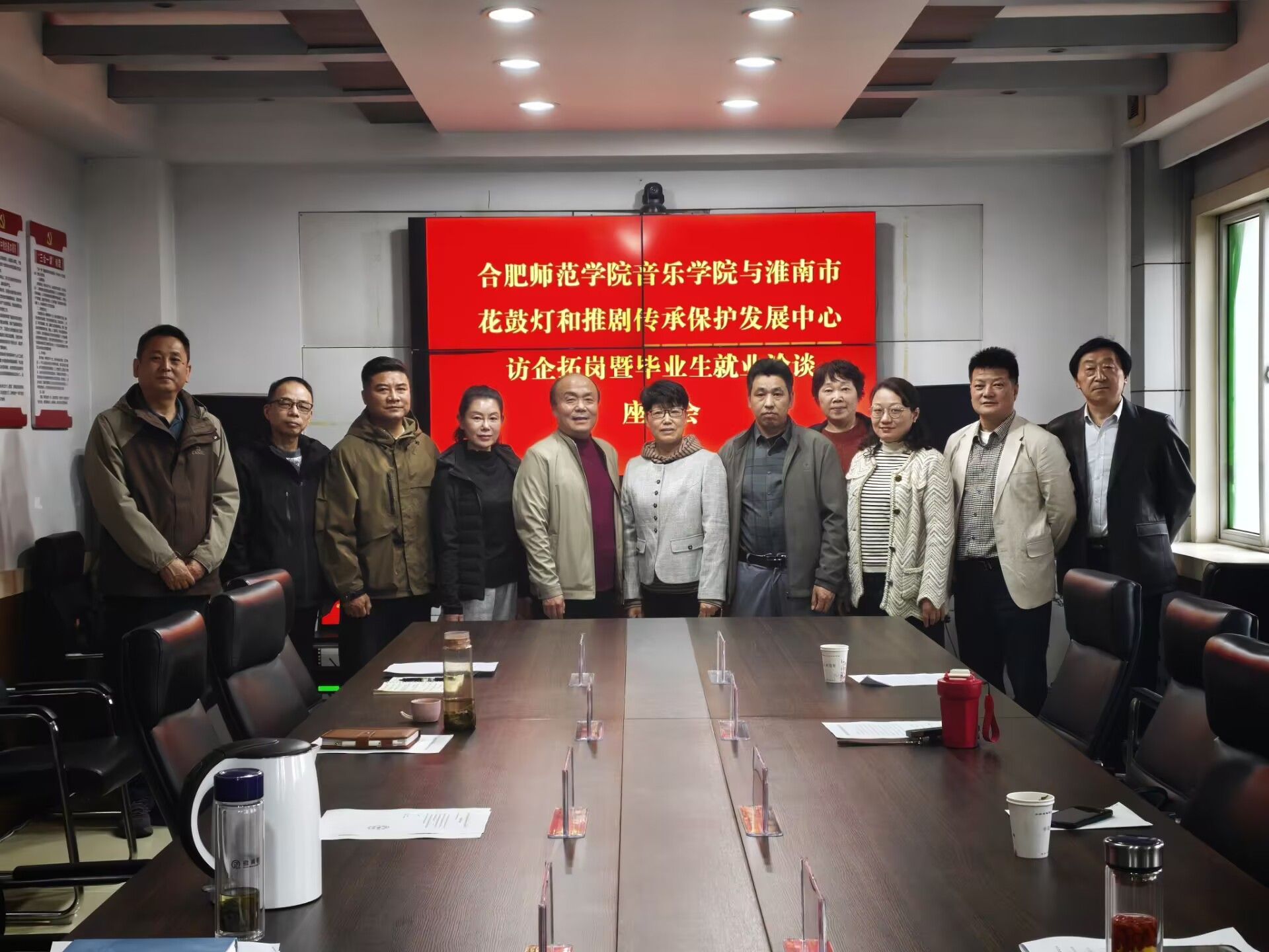 上午,与淮南市第三中学就共建美育实践就业基地进行了座谈,淮南三中党委书记顾正龙致欢迎辞,校长夏胜先介绍了学校办学历史、美育发展及艺术成果,表达了深入合作的愿望。蔡成梅介绍了音乐专业建设、师资力量及人才培养情况,强调共建美育实践就业基地应聚焦各自艺术人才培育需求,找准切入点,互融互促,优势互补,务求实效,逐步深化。